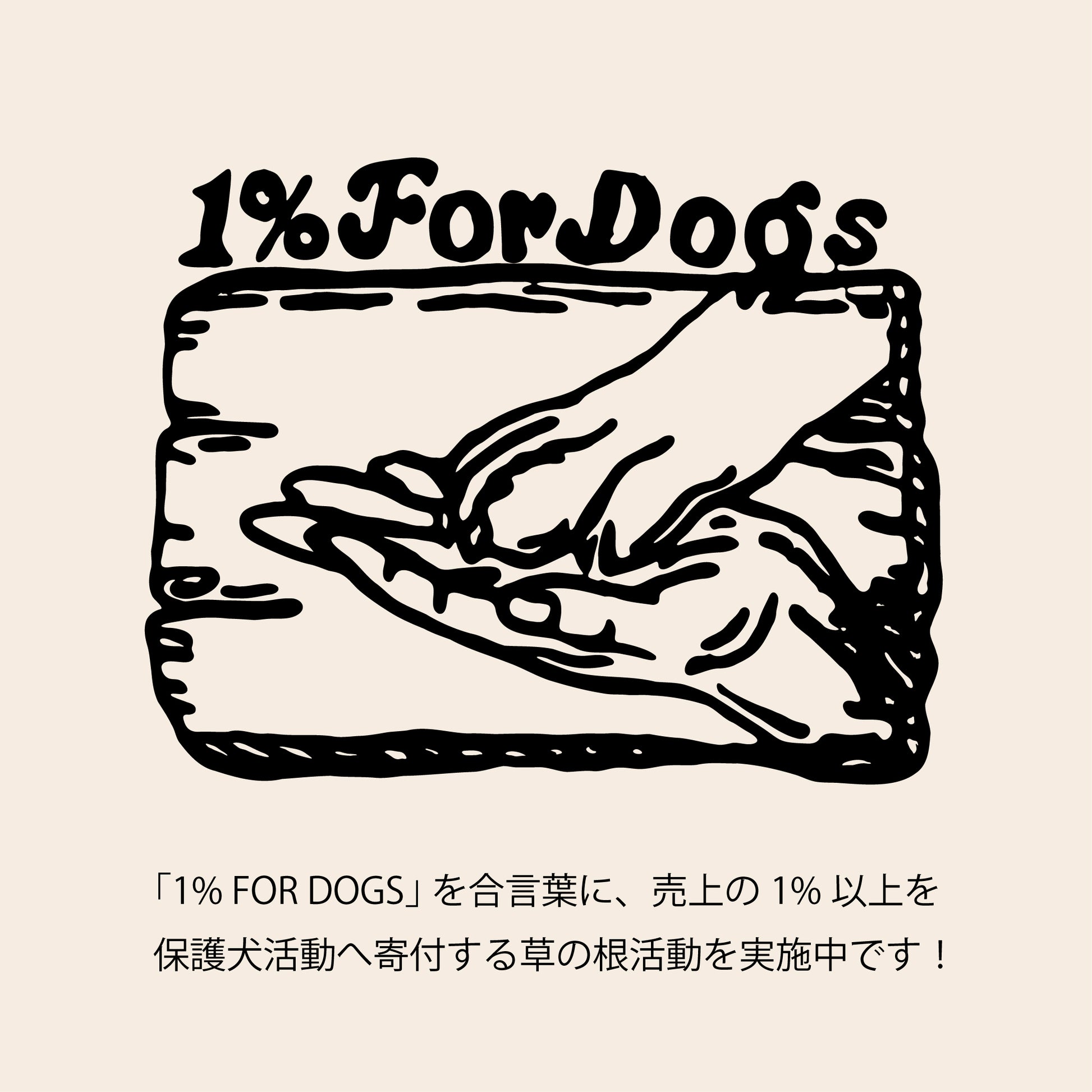 売り上げの1%以上を犬の保護活動に寄付する「1% FOR DOGS」という取り組みを行っています。